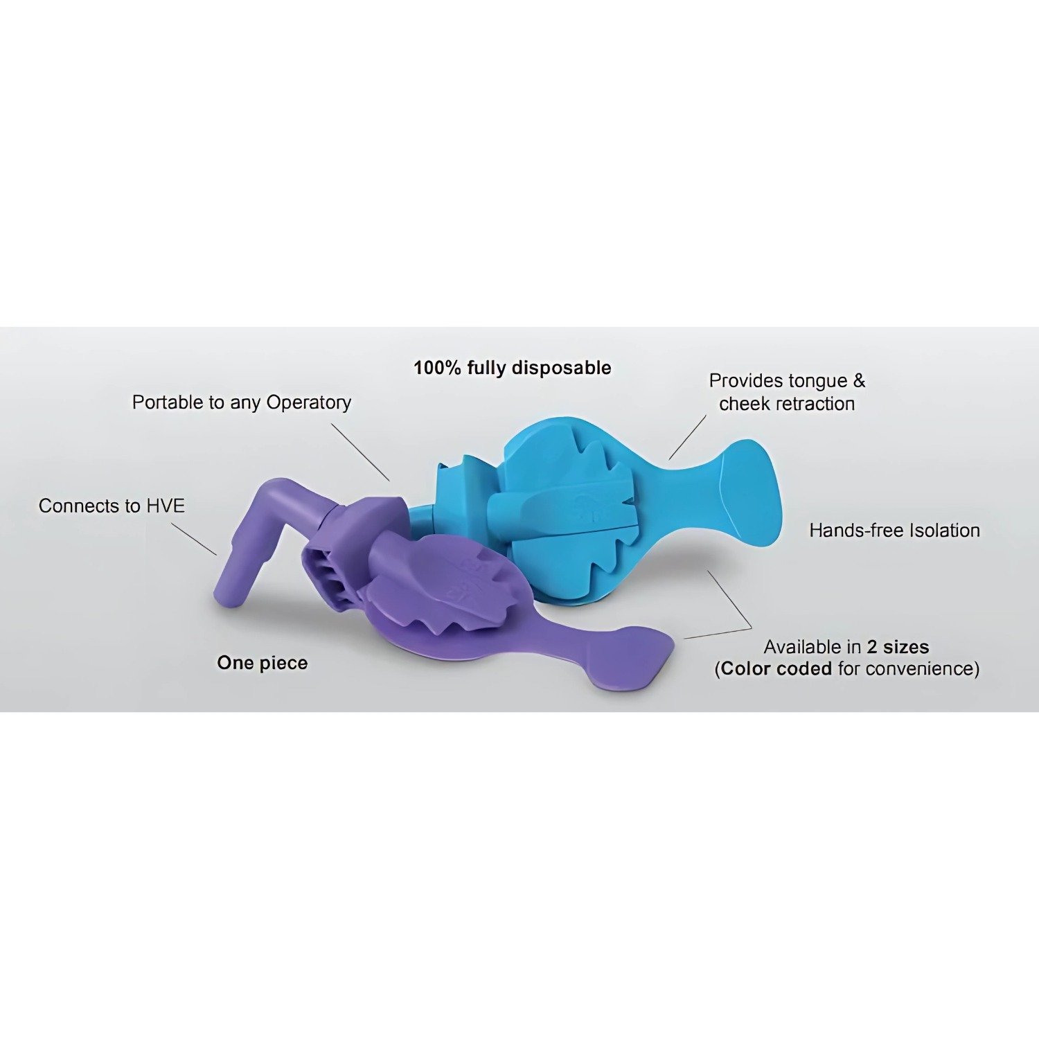 Zirc Mr. Thirsty One Step is a hands-free isolation device that evacuates and retracts the tongue/cheek giving the practitioner an unobstructed view of the quadrant.